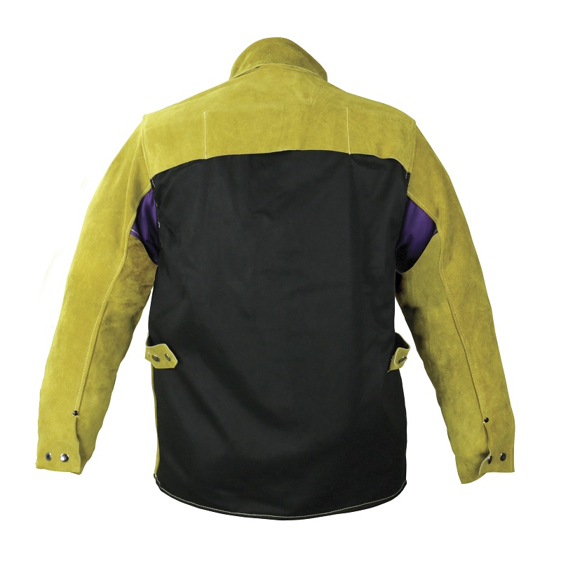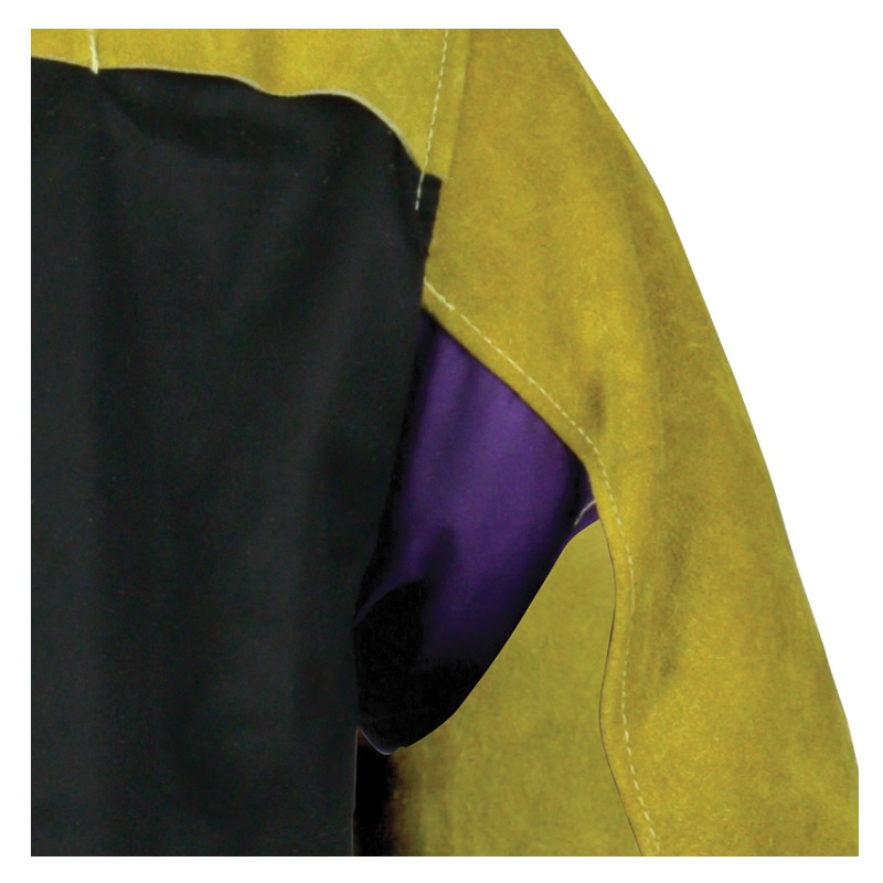 Worn over garments to protect body and arms from sparks and spatter.